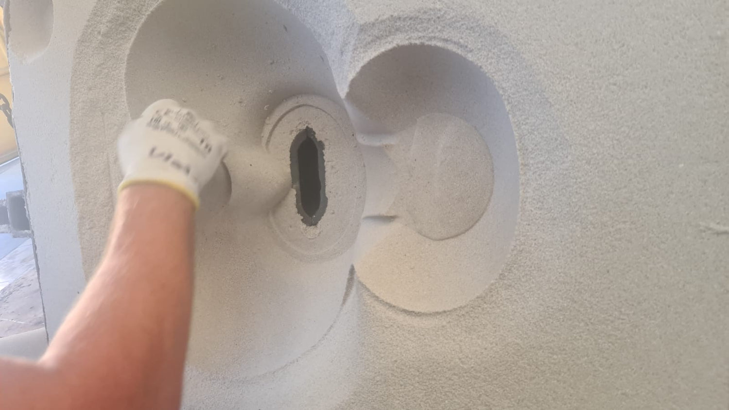 In order to create a Flowform, we first have to make a mold in the desired shape. Our molds must be strong enough to withstand the intense heat of molten basalt.