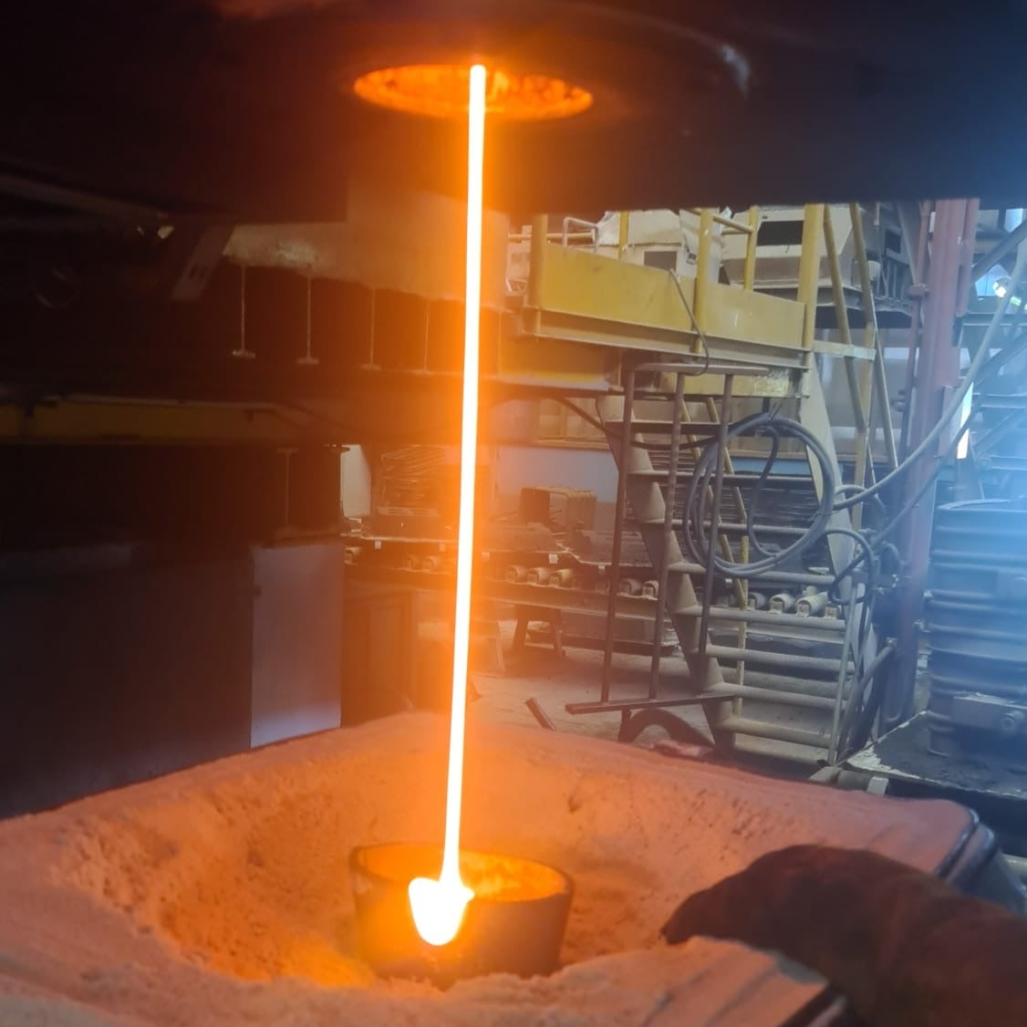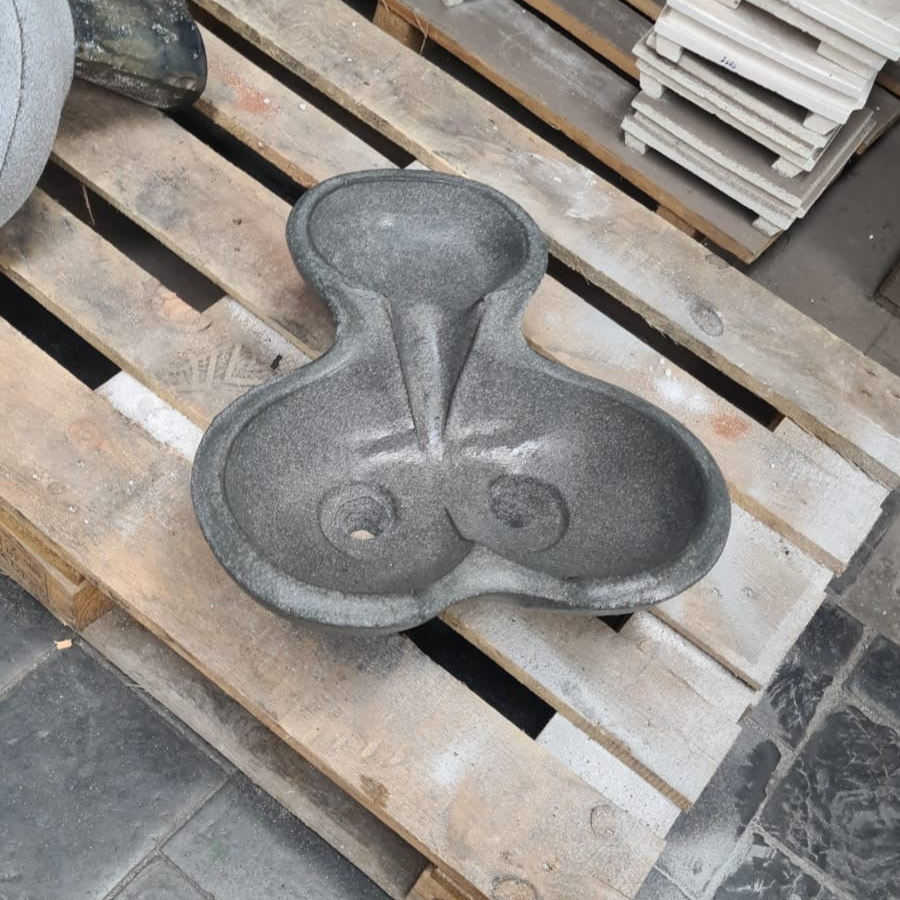 The pouring of molten basalt is the next step in crafting a Flowform. This process requires high precision and excellent technique, as we have to ensure the basalt is poured into every curve and crevice of the mold in order to achieve that smooth surface everyone loves. As it cools and solidifies, the basalt transforms into a durable, tough stone, preserving the intricate patterns that will direct water's natural movement in the finished Flowform.